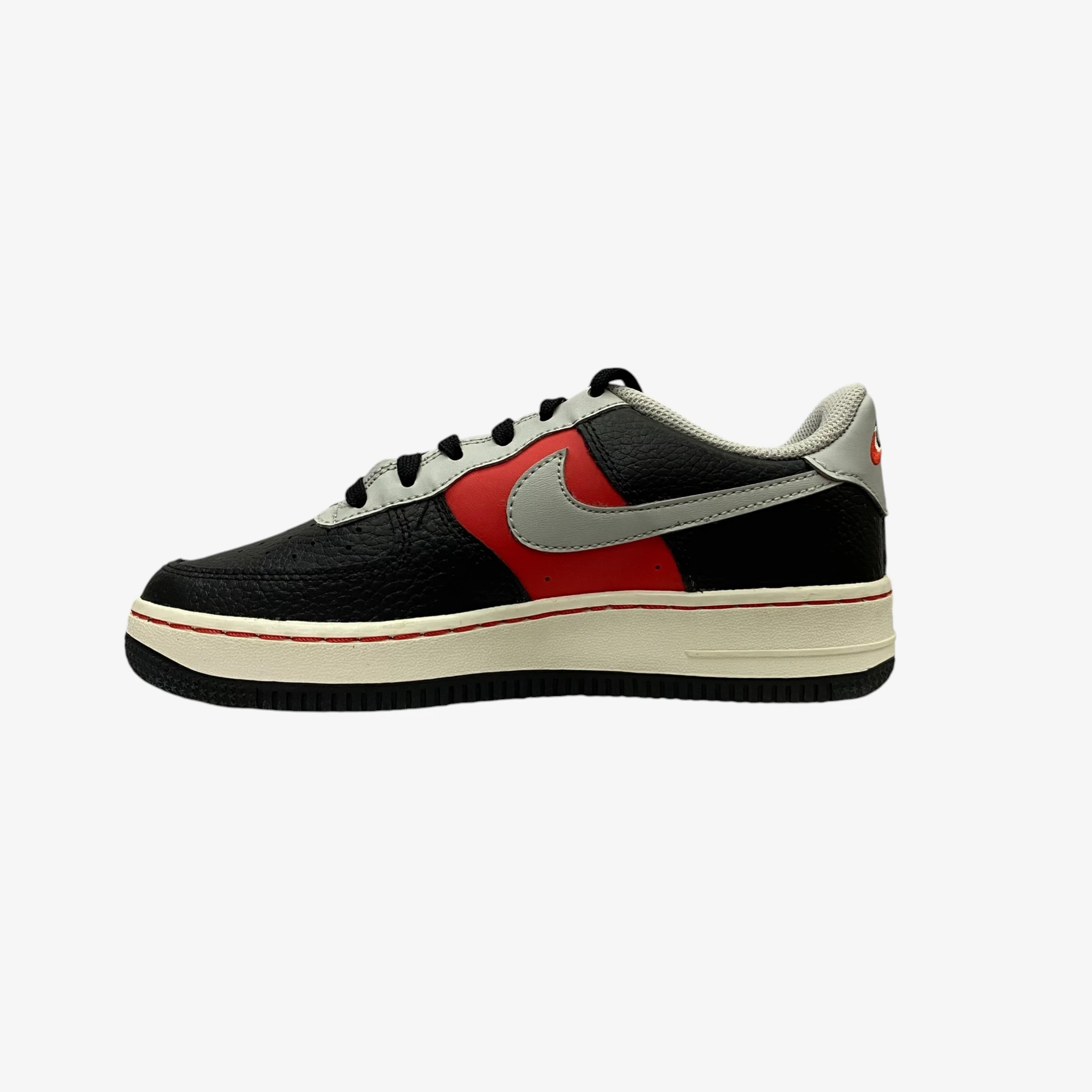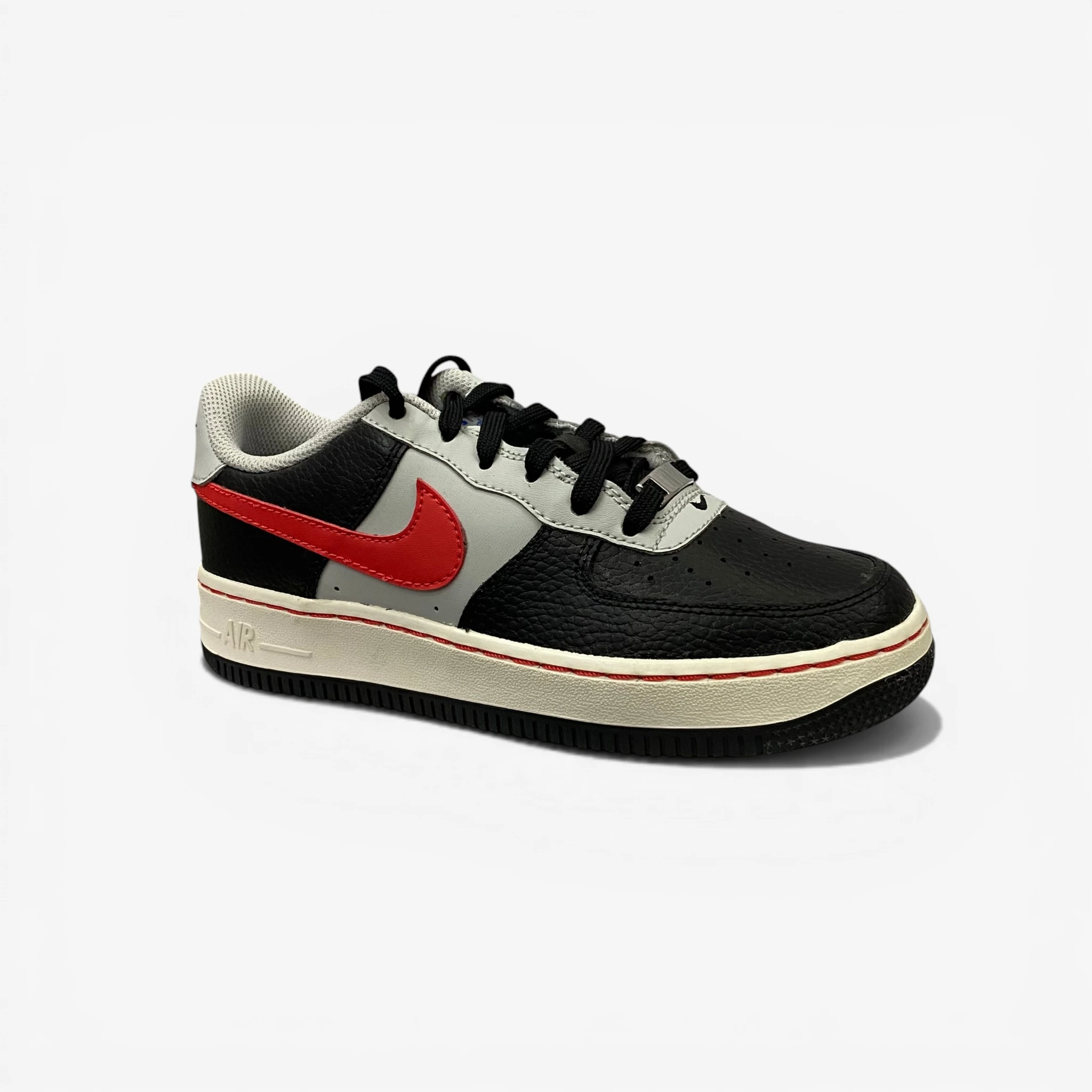 Elevate your kid’s sneaker game with the Nike Air Force 1 LV8. A modern twist on the 1982 basketball original, this version features premium pebbled leather and a bold color-blocked design that is perfect for the trendy youth in Beirut. The mix of black and cool grey, highlighted by a striking red Swoosh, makes it one of the most versatile pairs for school or weekend outings in Lebanon.