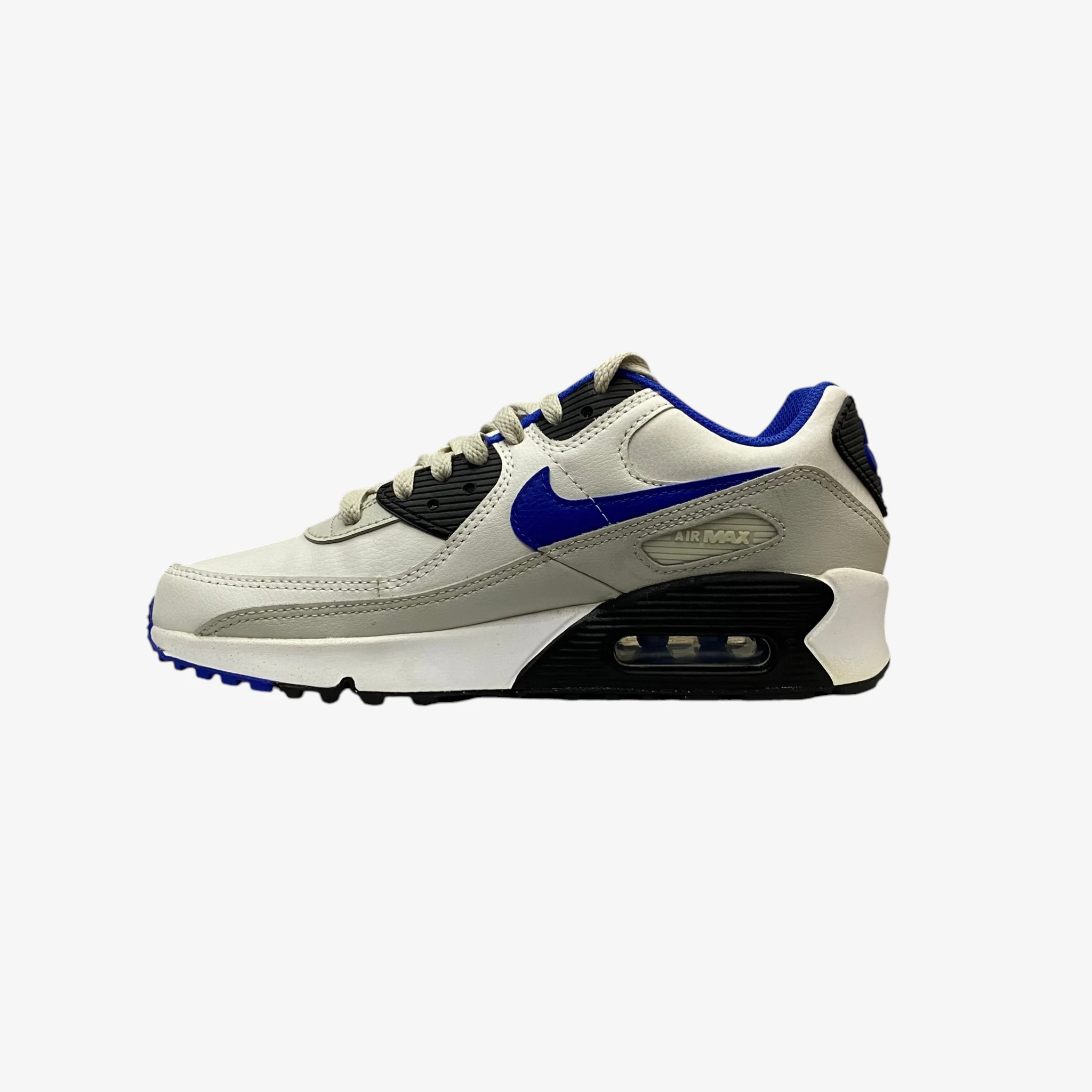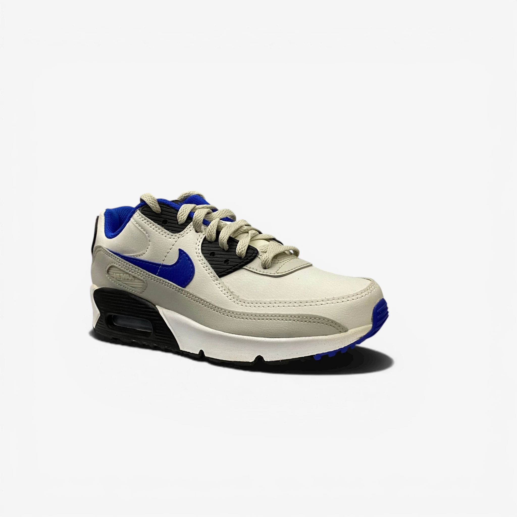 Step into a timeless classic with the Nike Air Max 90 in a crisp White, Grey, Blue, and Black colorway. This original sneaker design continues to deliver uncompromised comfort, lightweight performance, and a durable build that’s stood the test of time. Featuring a premium mixed-material upper of leather and synthetic overlays, these sneakers provide a structured and comfortable fit suitable for all-day wear. The iconic visible Air Max unit in the heel ensures plush cushioning, making them an excellent choice for casual wear. Designed for both form and function, the Air Max 90 balances athletic performance roots with unmatched street-style appeal. The padded collar enhances ankle support, and the classic rubber waffle outsole offers reliable traction and durability across varied surfaces. Whether you’re a long-time Air Max collector or just starting your journey, this striking blue and grey iteration is a versatile addition to any rotation. This is the authentic sneaker experience you’ve come to expect from the brand.