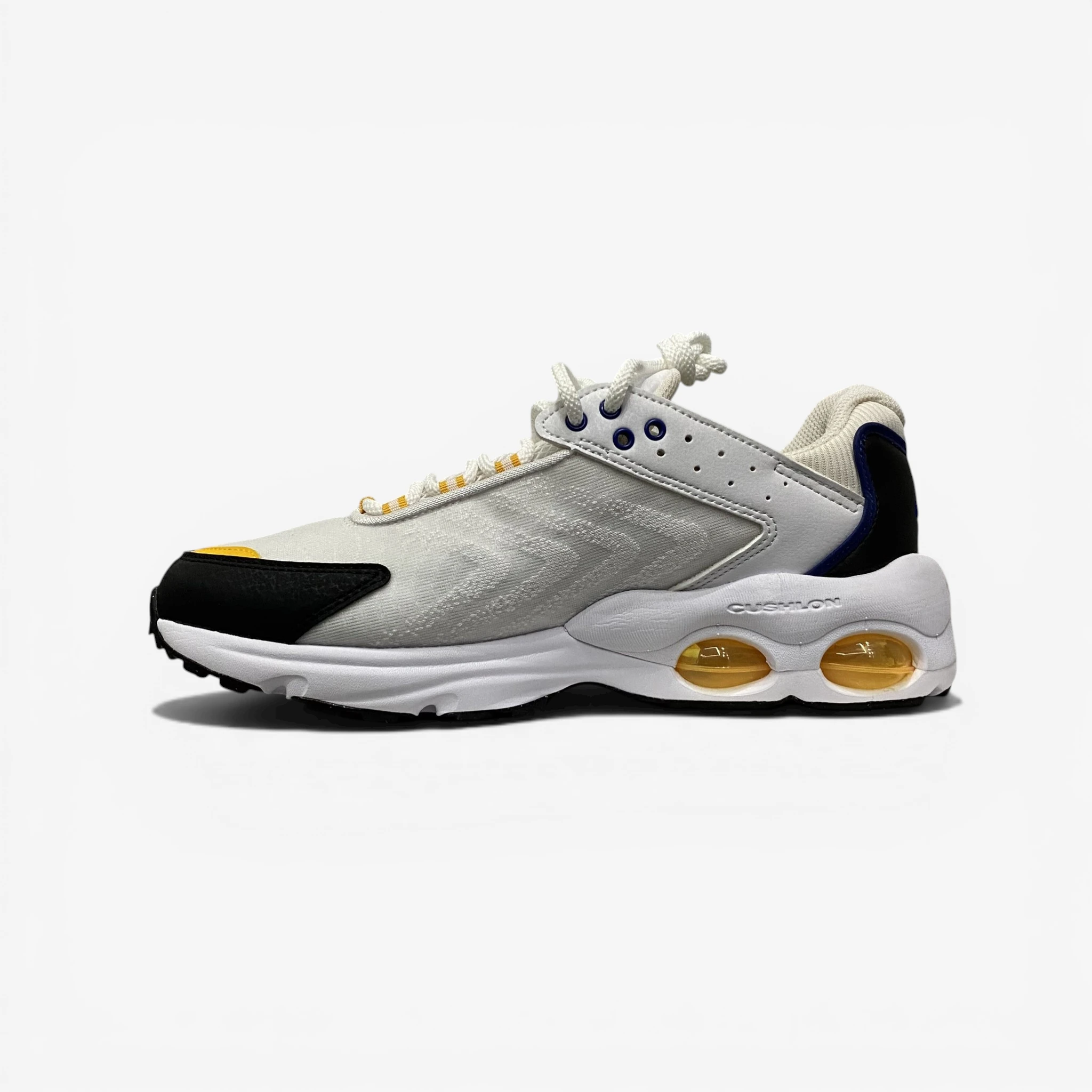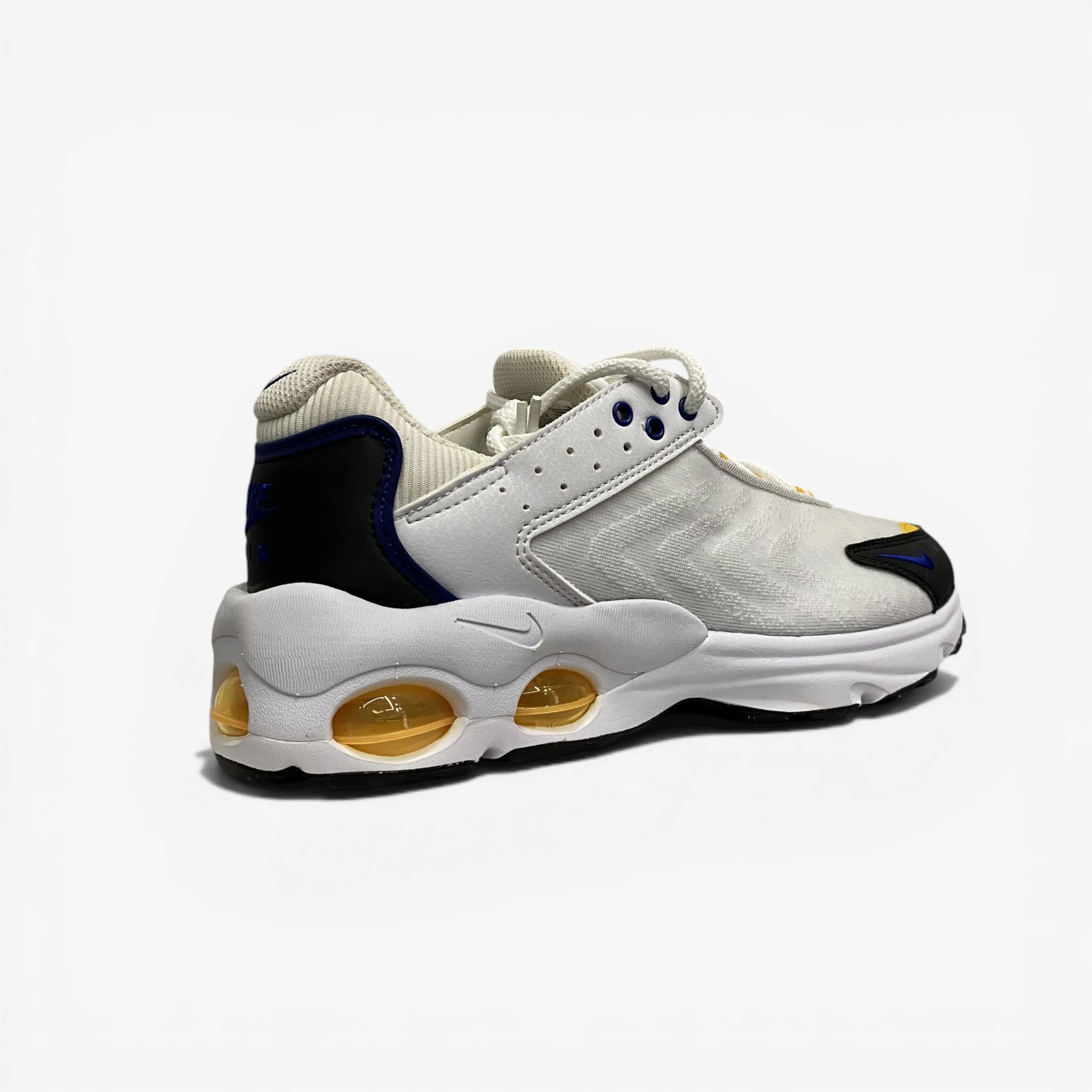 Channel the bold energy of the 90s with the Nike Air Max TW. Inspired by the legendary Air Max Tailwind series, this sneaker is a masterpiece of retro-futurism. For the sneakerheads in Beirut who love a bulky, expressive silhouette, the TW offers a high-impact look with its clean white mesh upper, sharp black overlays, and vibrant yellow and blue accents.